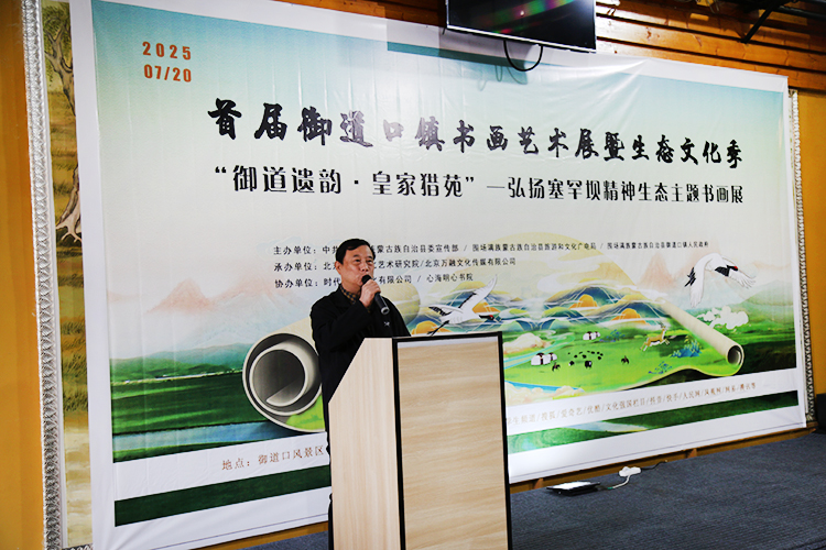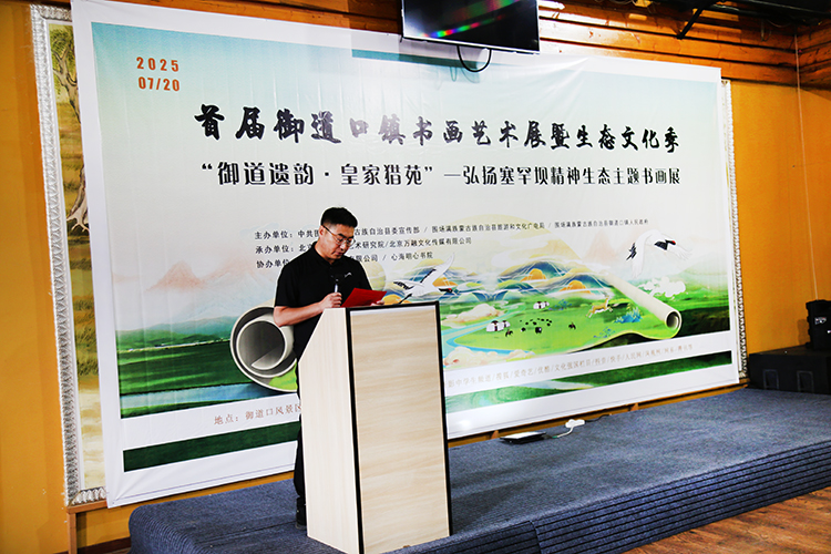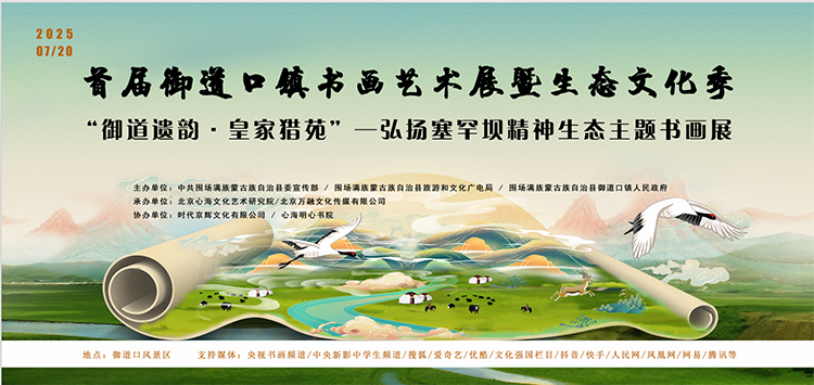 首届御道口书画艺术展暨生态文化季——“御道遗韵·皇家猎苑”弘扬塞罕坝精神生态主题书画展于2025年7月20日在御道口沙洲野泉度假酒店隆重举办