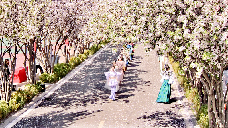 中国教育电视台记者宋宇齐与10名学生记者沉浸式导览国际海棠文化艺术节