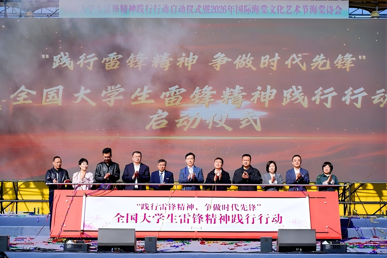 活动现场,校领导李宝山、张振华、王传超、赵鹏、路威平与嘉宾共同启动“全国大学生雷锋精神践行行动”。号召广大青年学子将雷锋精神融入日常学习和生活,通过志愿服务、社会实践等形式,积极投身公益事业,用实际行动诠释新时代雷锋精神的内涵,激励更多人加入到服务社会、奉献爱心的行列中来。