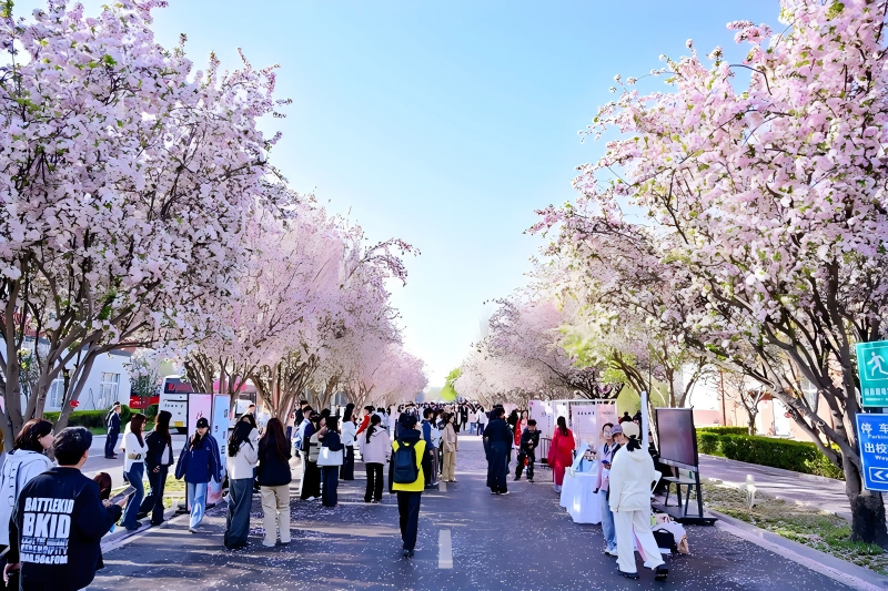 校园开放日为考生及家长搭建了直观了解学校的平台,吸引8万余名游客、家长与考生预约入校,形成跨城赴约的区域热潮。活动获权威媒体聚焦报道,更以校地协同、文旅融合、开放育人、国际交流四大维度,深度辐射京津冀,让社会各界近距离感受办学理念、教育成果与发展前景。与此同时,众多校友重返母校,同赏海棠花、重温旧时光、共叙同窗情。