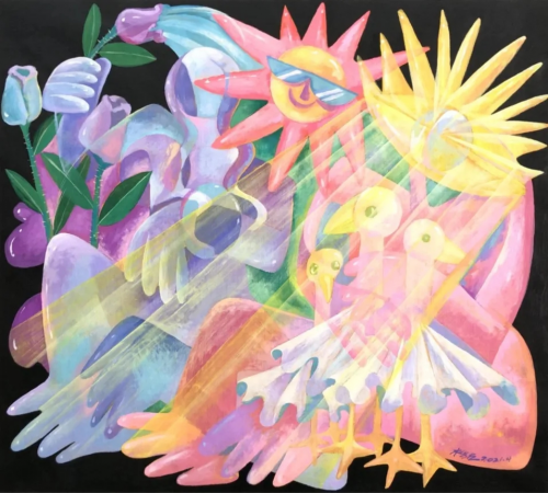 梁敬达穿越城市常游走在丛林,日常烂漫幻想,却又本真纯粹。他独具诗人的敏锐洞察着世界,感受着生活的真谛,这也使他的诗篇变化多端充满着神秘性。如果说楷茳是散文诗人,梁敬达则是多元化的诗人,抒情诗、咏物诗,讽喻诗…都是他画语里常有的类别。不善言语的他,把画画和自己揉为了一体,创作便是他日常精神领域的叙述。他异常清晰地储蓄了独一无二的个人化踪迹,在具象与抽象相互叠合或对应,在现实与超现实之间,在情绪与色彩的结合下引人入胜。