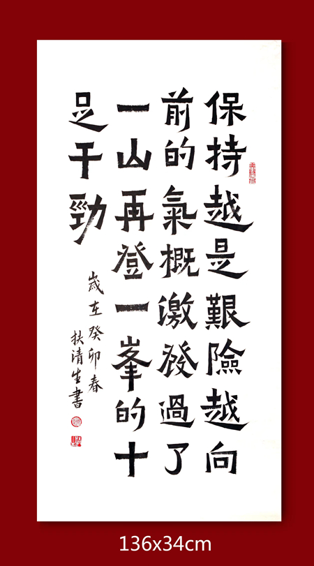 扶清生,广东乐昌人,毕业于广州美术学院,当代著名实力书画家,中国书法教育高级讲师,国际委艺术智库专家,央广国际文化交流艺术委员会副主席,胡润国际艺术品拍鉴定中心特聘书画家;2023中外文化交流大使;2023文化中国传播大使;《商业文化》杂志社签约书画家;中国服务贸易协会国际交流委员会会员;中国书画家联谊会会员;中国民族建筑研究会艺专委理事;新文艺群体书画家会员;中国楹联学会会员;CCTV《名家传承》艺术人生个人专访播出,荣获2021年度最具影响力艺术名家荣誉称号CCTV《中国文化人物--扶清生》专题片播出CCTV《文化强国》主题北京一号线专列作品巡展CCTV二十大专刊《文化视界》、CCTV《向人民汇报--著名艺术家优秀作品展》2021作品入选《文化中国》中国力量中国梦推动者,“文化中国”工程入选者,珠海成人公益艺术教育、书法进课堂等青少年艺术普及传播者《中国书画家报》、《联墨艺术报》、《中国企业家报》《中国民族建筑》、《民族艺术》《民族书画家报》《中国书画艺术名家作品集》《中国最具学术价值的百位书画名家精品典藏》《中国百强企业招牌匾》《民建艺专委2021年年鉴》《建军95周年暨二十大国礼邮品收藏》《商业文化》等各类专业刊物均有入编,出版有《盛世中华--传世名家扶清生作品》个人专辑,中国书画网、华人日报网、中国资讯网、中国发展报道网、新华资讯网、中国新闻在线、北京新闻网、中国都市报道网、中华人物网、中国公关新文网,中国传播网、文旅中国、央媒联盟、中国互联网报道、中国人才网、人民收藏网、中国企业品牌网、世界名人书画网、网易新闻、中国商业财经网、中国报讯等几百家网络媒体均有报道,受邀中国民族艺术学术交流书画邀请展,书画作品于香港中央图书馆、中国科学院信息港(东莞)举办