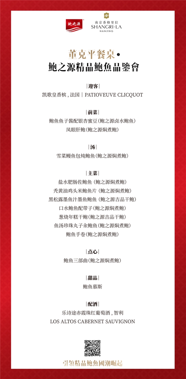在著名的美食评论家董克平老师的推动下,鲍之源的吉品干鲍、加工鲜鲍制品进入了中国一线城市高端餐饮品牌、米其林、黑珍珠主厨们的视野。继新京菜创始人段誉,先锋派主厨周子洋之后,这是中国精品鲍鱼品牌鲍之源第一次和中国八大菜系的淮扬菜名师合作,共同推出一席以淮扬技法表达中国精品鲍鱼的晚宴。