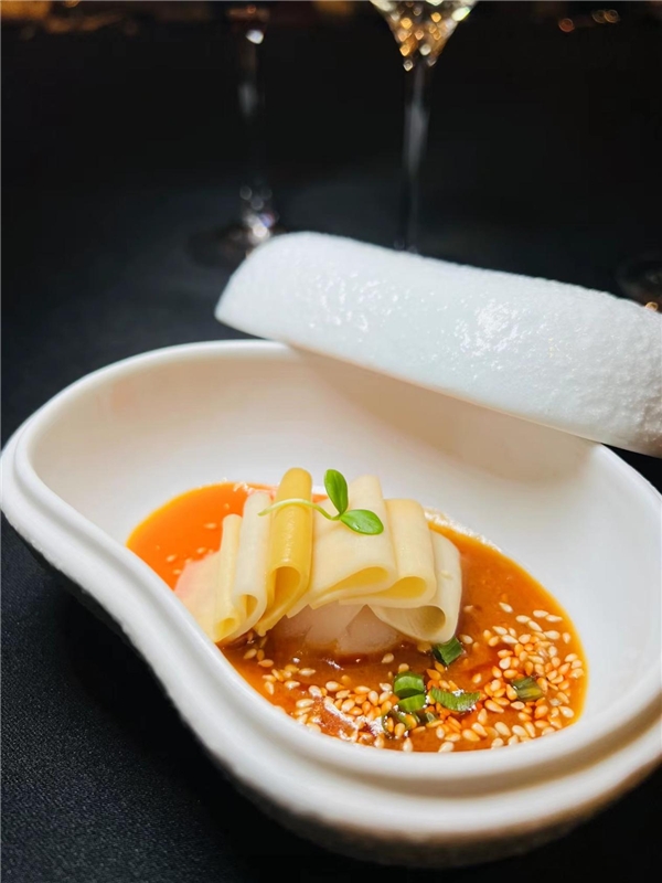 银杏落黄,金陵醉秋。晚宴以鲍之源的卤水鲍鱼作为冷菜开场,配以南京城秋日银杏与蜜豆,足以见得卤水鲍鱼作为鲜鲍预制品的不凡实力。