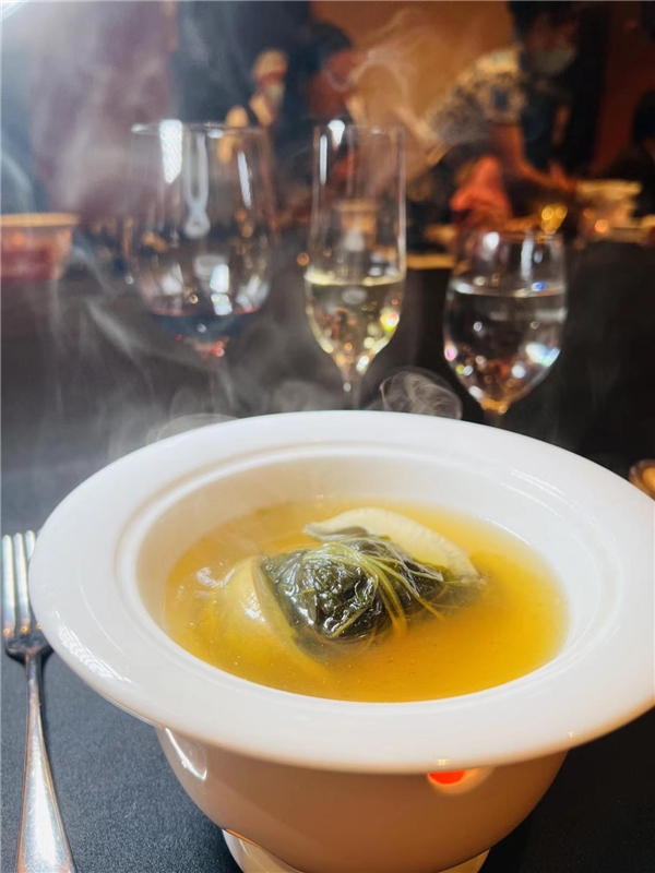 淮扬治汤,好水陆珍奇汇聚,以汤浓醇兼备为重。侯师傅吊汤讲究,注重营养、取材严格。鲍之源的鲜鲍两大特点,香气分明,久煮不韧被侯师傅一丝不苟完美呈现。