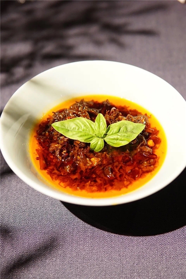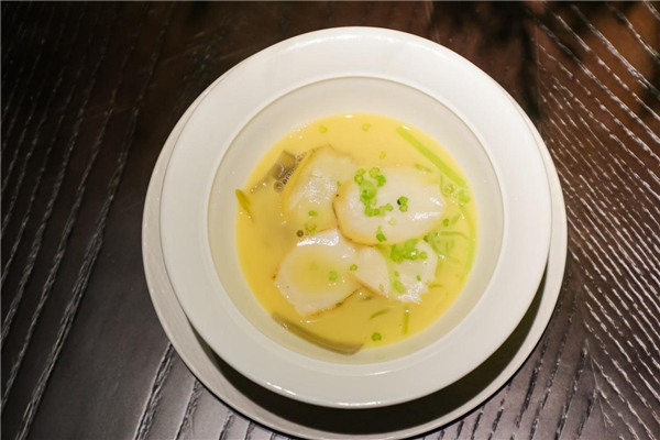 XO酱是上世纪80年代香港半岛酒店的首创,它自上而下的流行也是高端食材大众化的趋势使然,XO酱双葱炒名贵海鲜这个组合,是顶级粤菜食肆中非常考验厨师火候技法的一道菜,是经年累月的基本功,简单不寻常。对鲍之源产品特性熟透了的品牌负责人于洋尤为称赞:以厚切2头鲜鲍来做,比薄切难得多,薄切求稳,厚切求嫩,实乃武林高手。
