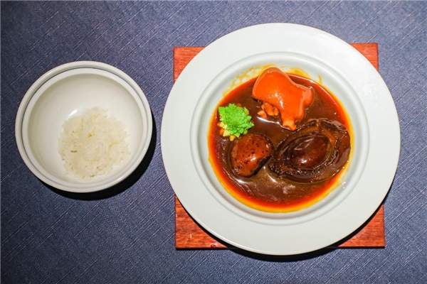 酒席尾声,杯酒尽兴,需要醒胃的好菜收尾。鲍鱼焖猪蹄,两味浓墨重彩。鲍之源的干鲍品种早已在技术迭代中完成高品质杂交、优育,日本吉品干鲍的制作工艺,阿一鲍鱼的煲制手法,这些都在若干年后的今天,以上乘品质平实价格实现了这个海洋名贵食材的大众化。