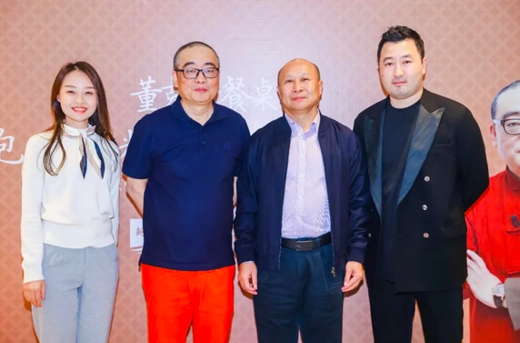 鲍之源创始人于德华(左三)与董克平老师,周子洋主厨