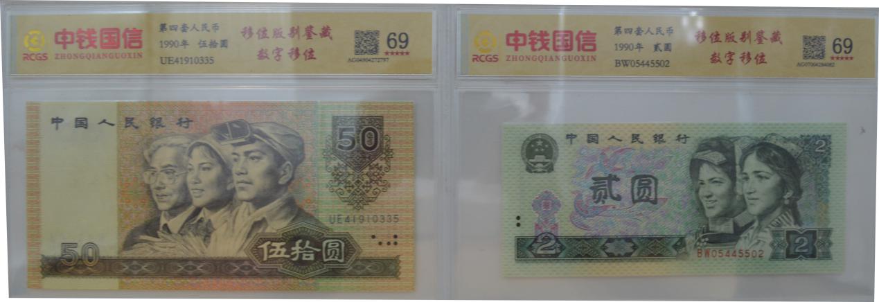 以经典的90版贰圆“绶鸟翠竹”移位为例。那只本应稳立于枝头的绶鸟,因凹印的偏移,仿佛在底纹构成的彩色光晕中微微振翅,静物被赋予了动感。底纹的网格与色彩不再只是背景,而是与主体产生了空间对话,甚至有些像当代艺术中的“错视画”,挑战着我们关于位置与背景的固定认知。